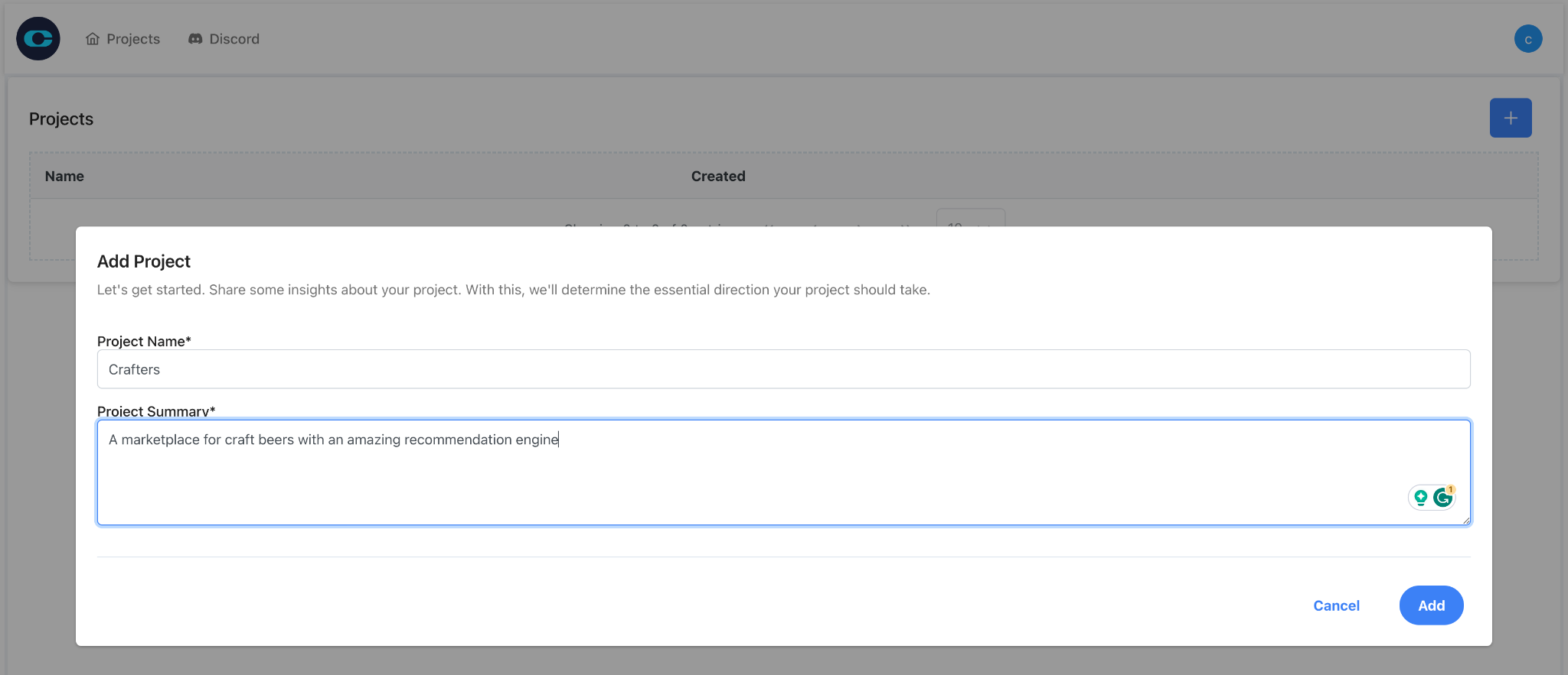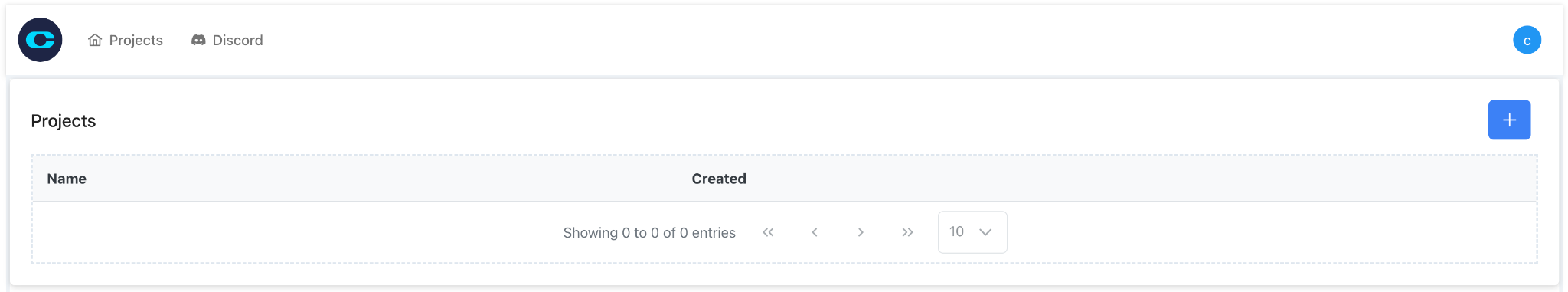 Once logged in, you'll land on the dashboard. Click on the “+” button to create a new project.